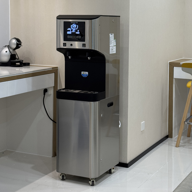 深圳市福田某某銀行之前一直喝的是桶裝水,覺(jué)得燒水麻煩,燒水壺都買(mǎi)了好幾個(gè),桶裝水都堆放在臺(tái)面下,占空間且不美觀,了解了直飲水機(jī)的優(yōu)勢(shì)之后,果斷選擇采購(gòu)美辰直飲水ME205B,可提供50-100人健康飲水,即熱即飲,不用排隊(duì),安全健康又美觀,客戶表示非常滿意這臺(tái)直飲機(jī)。